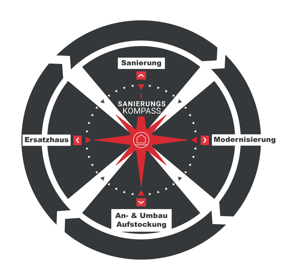Unser Sanierungs-Kompass zeigt Ihnen, welche Möglichkeiten es gibt, IHR Fertighaus perfekt zu sanieren...