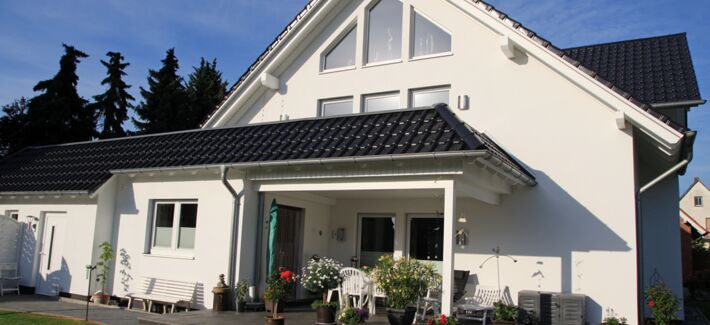 Ein Vordachanbau am Fertighaus kann auch als Terrassenüberdachung erfolgen oder als Regenschutz für Fahrräder oder Feuerholz. Wie individuelle Nutzungsansprüche und Vorstellungen objektspezifisch am besten umgesetzt werden, dazu beraten die renopan-Fachbetriebe gern kompetent und individuell vor Ort.